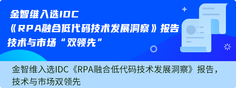 作为超自动化理念的践行者,金智维在保持RPA工具技术参数领先的同时,将RPA与低代码开发平台、AI、流程挖掘等自动化技术结合,为企业打造数字化底座,赋能企业数字化转型。