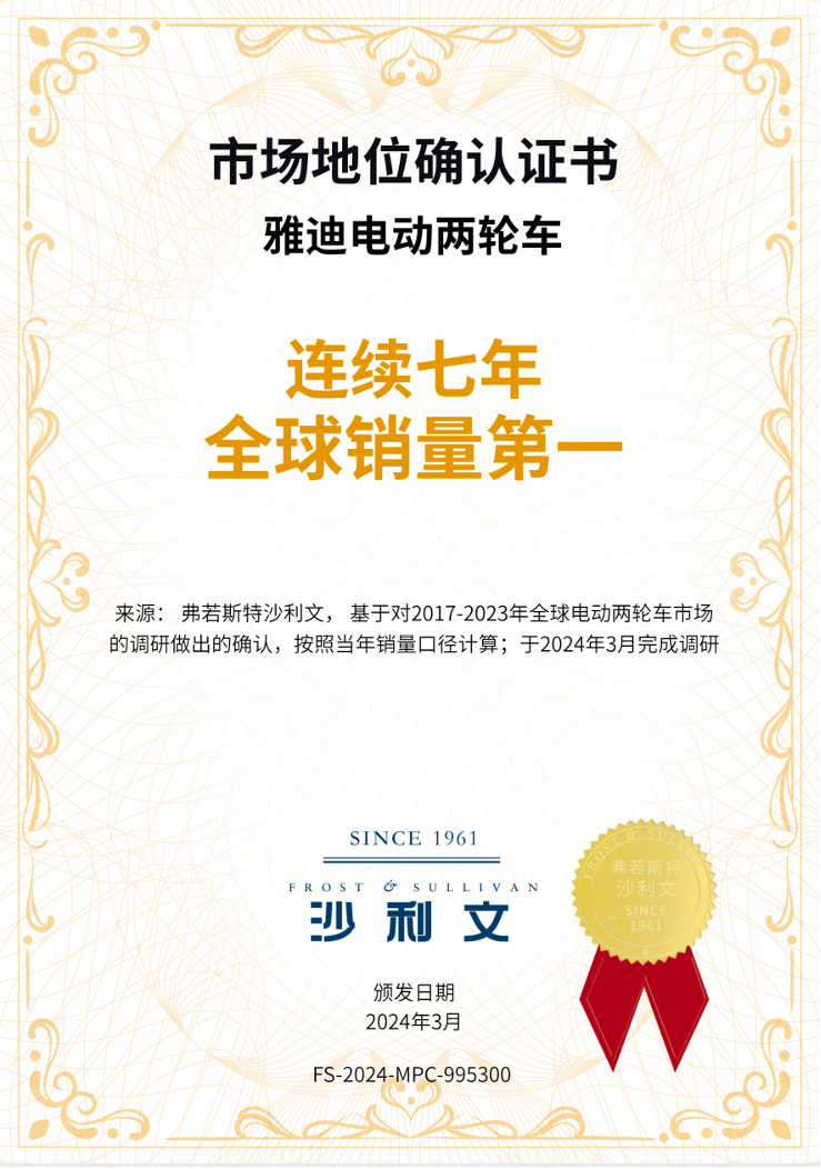 能力越大,责任越大!雅迪作为中国两轮电动行业代表从众多品牌脱颖而出,并成功占据3个席位,不仅是政府对雅迪的高度肯定,更旨在希望雅迪持续发挥优秀企业模范带动作用,扛起行业规范可持续发展的大旗,以点带面推动行业向高质、创新、安全、安心等全方位良性发展,持续驱动产品和品质升级,并以完善的产品销售与售后服务体系,让广大用户买得省心、用得放心。