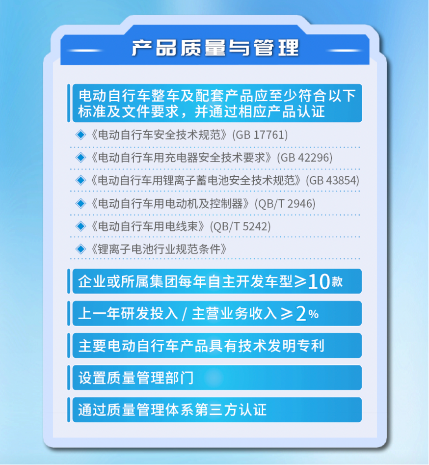 我国是全球电动自行车生产与消费大国,电动自行车已然成为众多民众出行的首选交通工具,目前行业产品集中度、质量保障等方面需要进一步提升。首批“白名单”的公布将成为推动我国电动自行车行业健康可持续发展的一针安全强心剂。