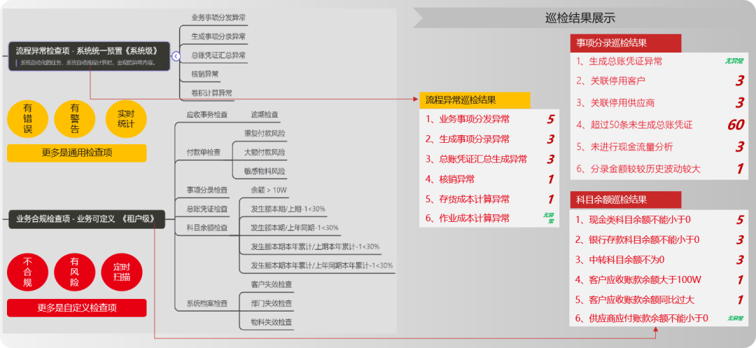 日常巡检提前发现问题,解决问题,避免问题在月末堆积。月结检查项可用于日常巡检,在月结前提前解决,提升月结效率;
