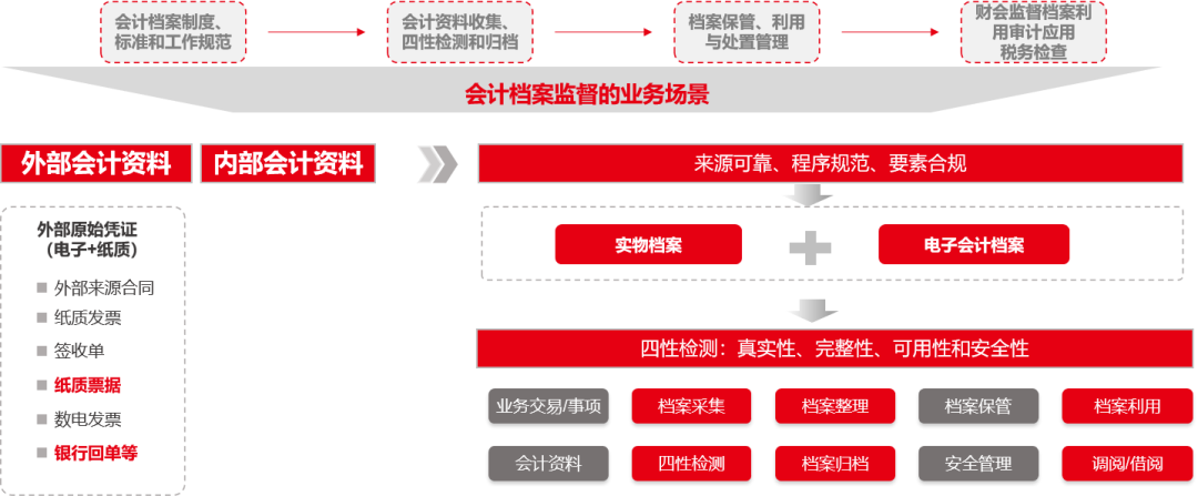 《关于进一步加强财会监督工作的意见》强调“按照会计法赋予的职权对有关单位的会计资料实施监督,规范会计行为。各单位应配合依法依规实施财会监督,不得拒绝、阻挠、拖延,不得提供虚假或者有重大遗漏的财会资料及信息。”会计档案资料的监督检查是财务核算监督的一个重要环节,可基于数智化手段对会计资料的“来源可靠、程序规范、要素合规”进行监督检查,保障会计档案归档合规、来源可溯、证据可关联,为财会监督提供真实、完整、可用的会计资料。