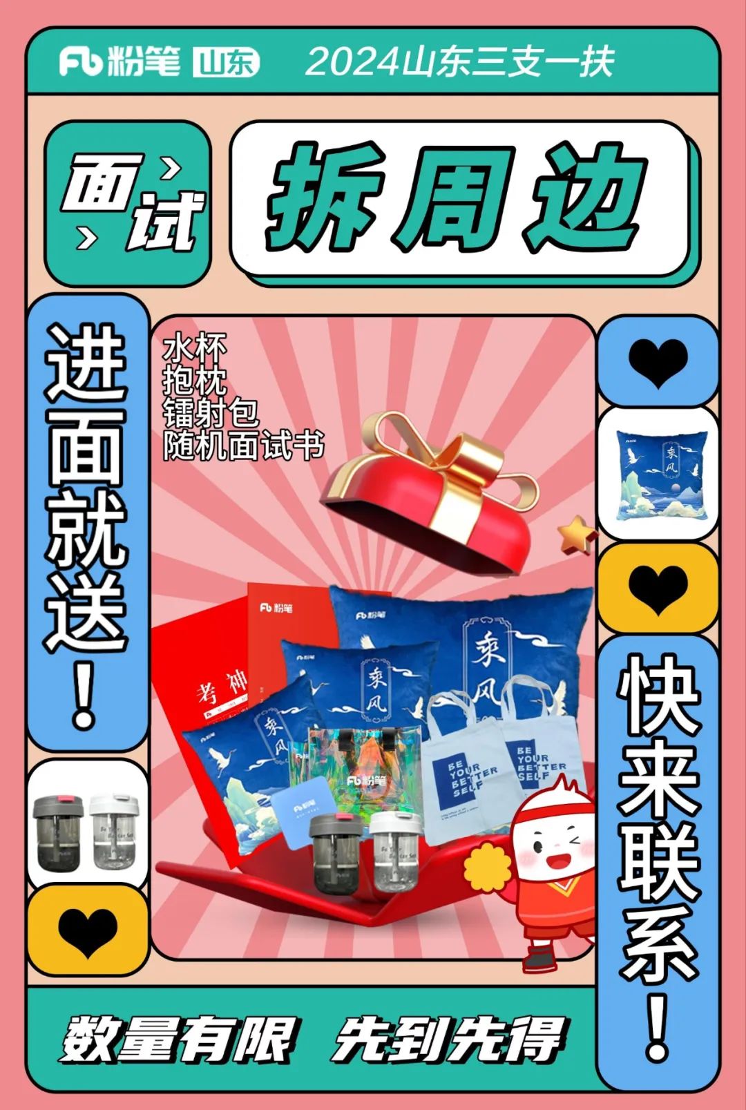 2024山东三支一扶进面的同学们,凭准考证和进面截图 领取周边一套(水杯+帆布包+镭射包)+随机面试图书~先到先得快来~