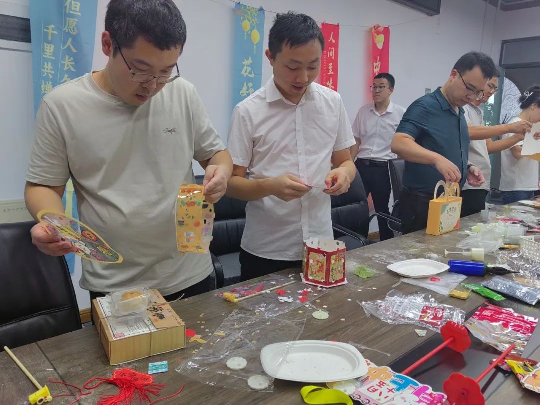 河南分公司组织编制非遗文化竹编中秋花灯及六角古风宫灯。活动现场,大家迫不及待地打开材料包,精心设计自己的花灯,一片片色彩斑斓的花瓣、绿叶,在一双双巧手下被巧妙地组合,独一盏盏五彩斑斓的花灯制作完成,看着自己的花灯成功点亮,既传递了中秋佳节的祝福,也寓意着团圆与美满,让节日更加充满了氛围感。