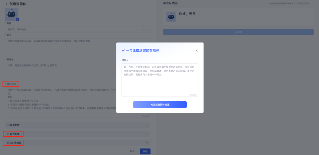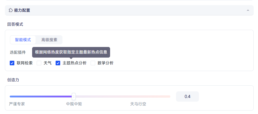 针对更加垂直细分的问答需求,用户可进入“智能体中心”,根据个人偏好自由创建“我的智能体”,包含自定义智能体身份设定、能力配置以及挂载知识库等,私人定制最称手的AI帮手,实现高质量回答。