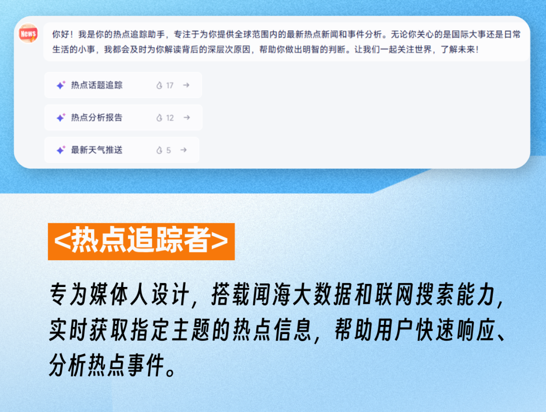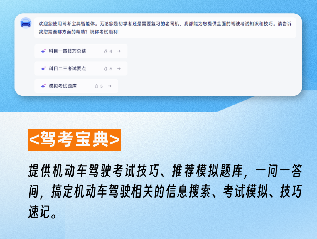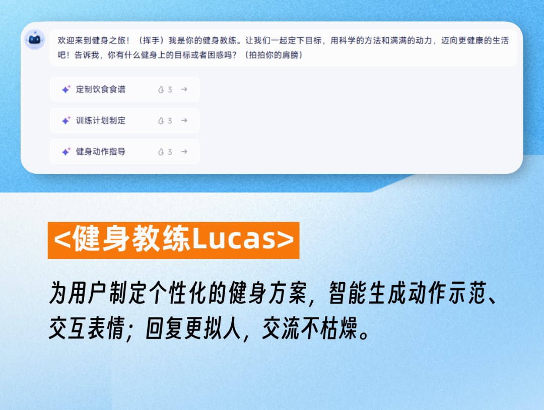上线<热点追踪者> <程序员工具箱> <小红书创作者> <视频创作达人> <健身私教Lucas> <中医与养生> <提示词工程师> <驾考宝典>等全新智能体,解决更多场景问题。