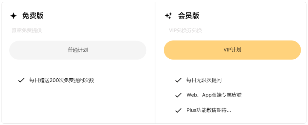 如需更多提问次数,可开通VIP计划,获得无限次提问和Web、App双端VIP专属皮肤;未来还将解锁更多VIP能力,敬请期待!