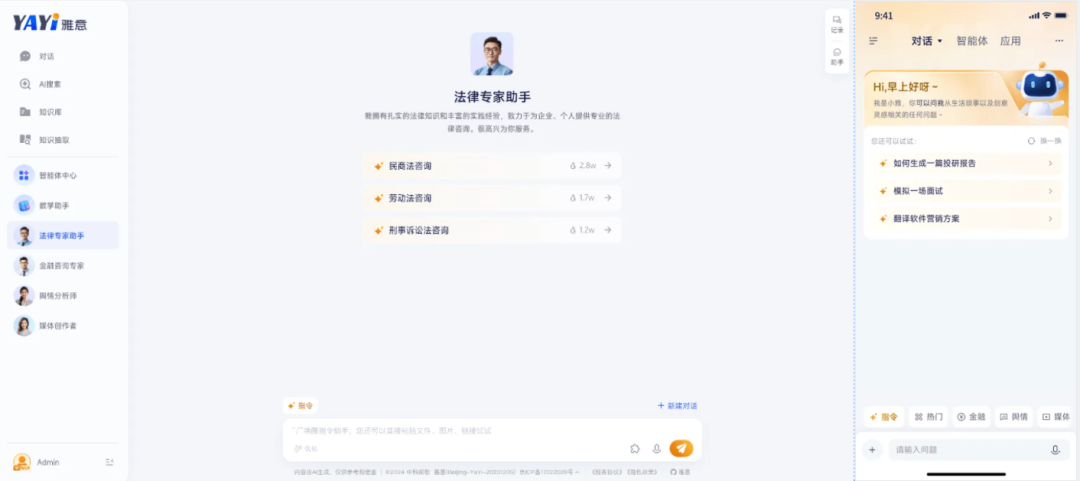 雅意大模型2.0焕新升级V063!开放限免,上线智能体中心