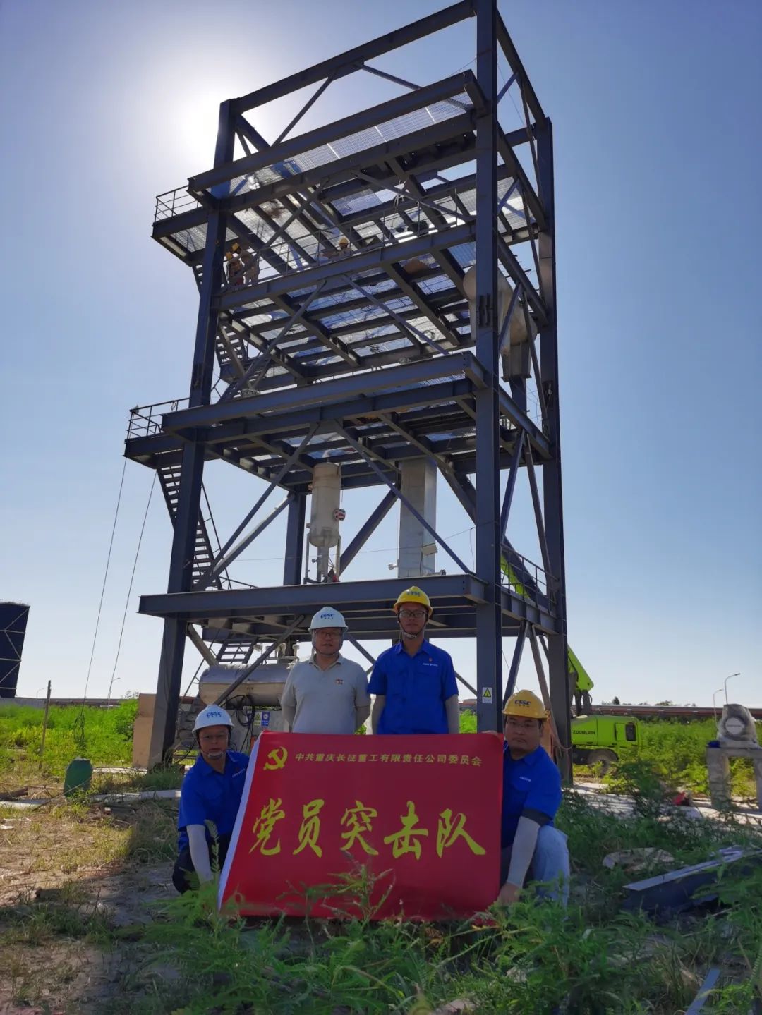 近日,浙江嘉兴进入酷暑季节,极端天气频发,最高温度达到41度,且伴随“格美”号台风过境,直接威胁到LNG冷能发电项目外场施工进度。为保障项目高效推进,在中国船舶长征重工党委的坚强领导下,科技党支部联合轨道党支部成立“珠峰”党员突击队,确保完成生产任务。