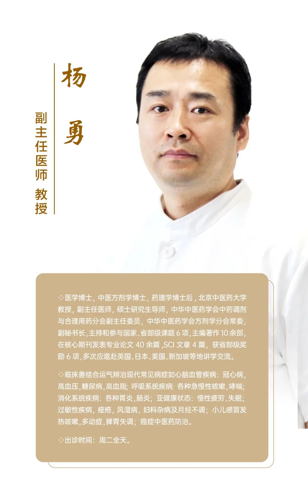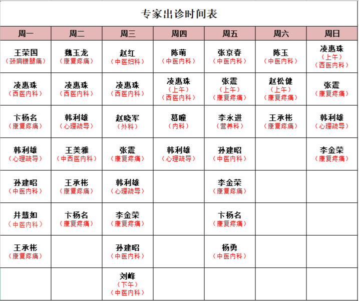 (如有临时调整请关注三疗健康小程序门诊预约)