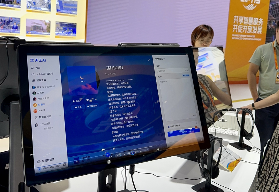 作为引领未来的前沿科技,AI等前沿技术正逐步成为驱动文化领域转型升级的新质生产力。昆仑万维携「天工SkyMusic」音乐大模型亮相,现场展示旋律创作、乐器编排等一体化智能生成能力,现场生成“服贸之歌”,吸引了大量观众和媒体前来打卡体验。