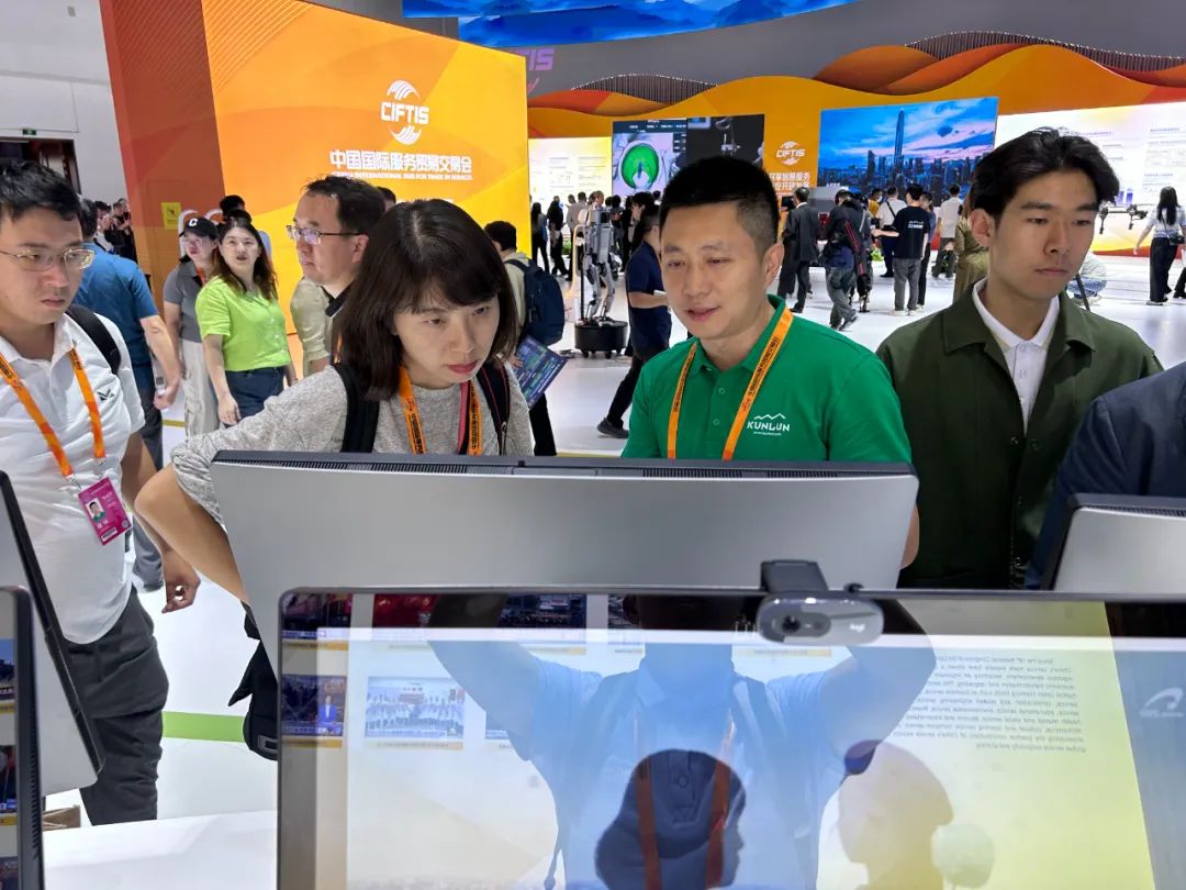 同期,2024年中国国际服务贸易交易会文旅服务专题展在首钢文创园9号馆举行。东城展区以“崇文争先 一脉传城”为主题,汇聚36家企业精彩参展,让古都气象在科技的流光溢彩中焕发新生。人工智能、数字文物、VR交互、3D互动、数字人全息影像等前沿科技,如同时空之钥,引领公众踏上文化之旅。