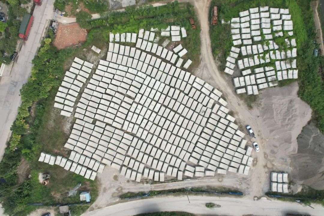 面对超大直径盾构管片生产的挑战和业主等单位提出的高标准高质量要求,江门分公司迅速反应、积极应对,在生产高峰期,每月最高生产管片276环,累计使用混凝土量约11.2万立方米,共占地面积281亩(含堆场)。