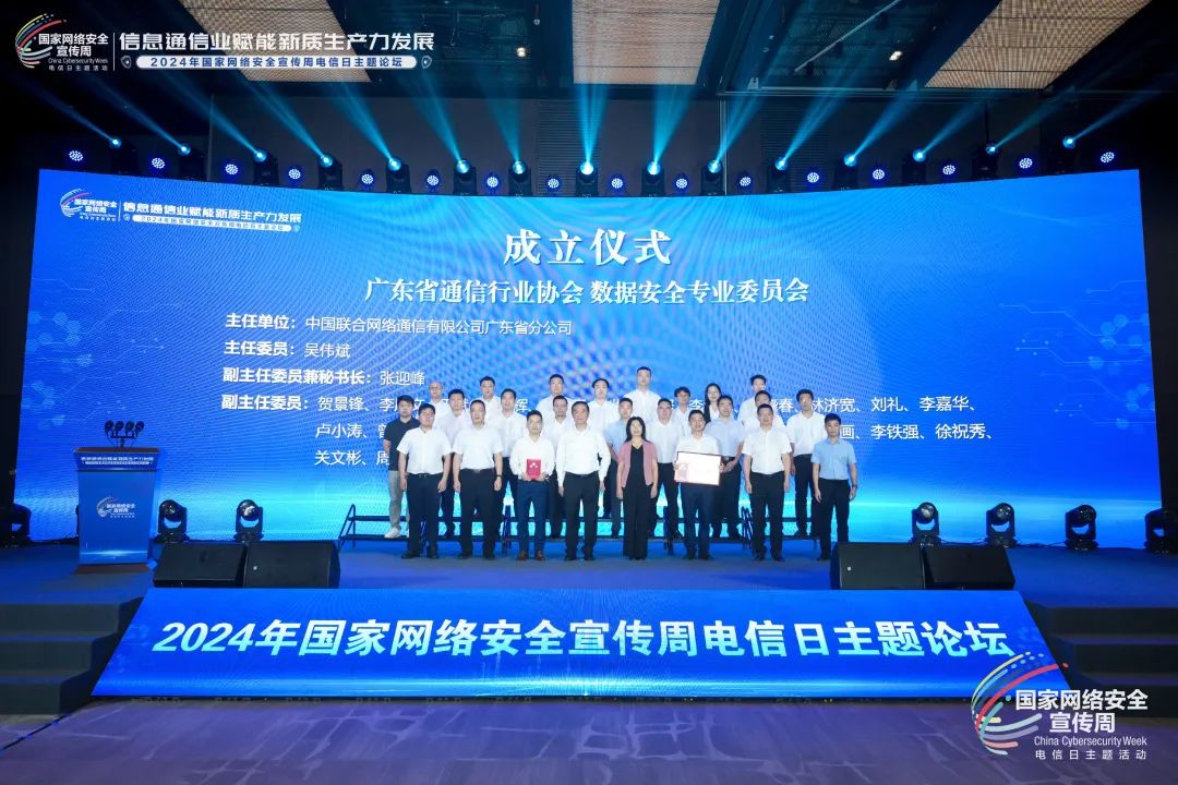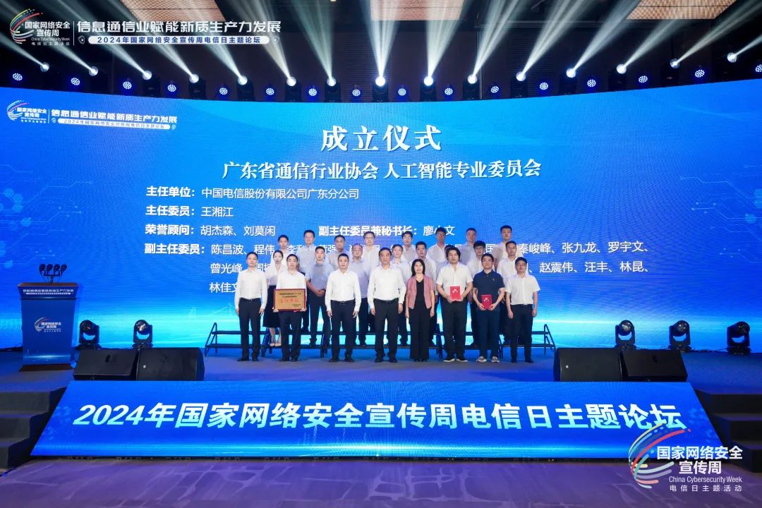 会上进行了「广东省通信行业协会人工智能专业委员会、网络安全专业委员会、数据安全专业委员会」成立仪式。