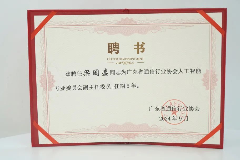 「广东省通信行业协会人工智能专业委员会副主任委员」