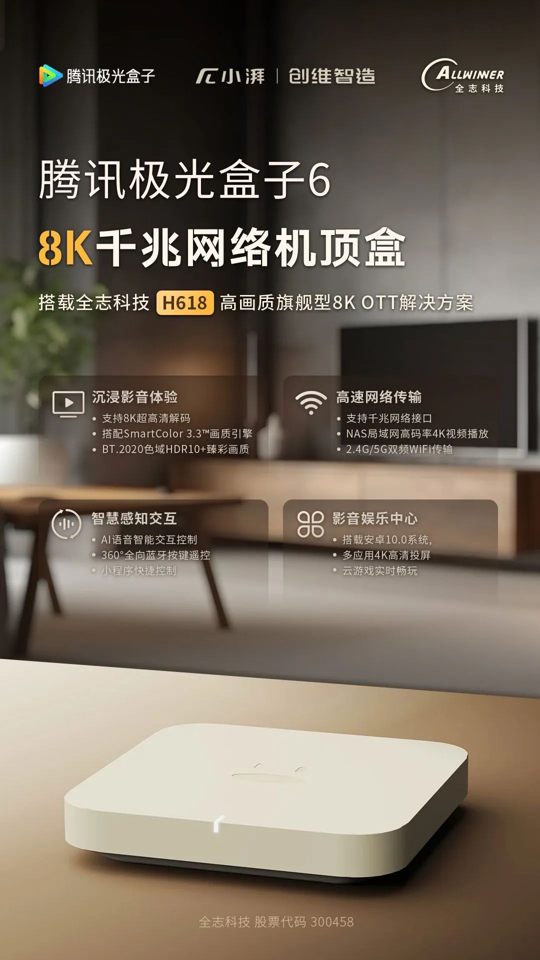 搭载 全志H618高画质旗舰型8K OTT解决方案 的 腾讯极光盒子6