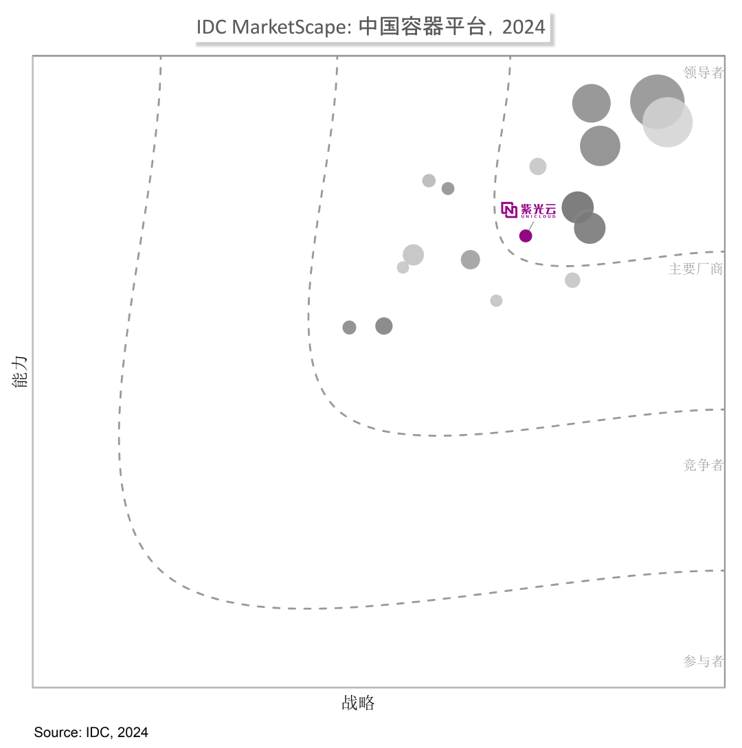 近日,国际数据公司(IDC)发布《IDC Marketscape:中国容器平台2024厂商评估》(后文简称“IDC MarketScape报告”)。报告中,IDC从多个维度对中国容器平台市场进行了分析与解读,紫光股份旗下紫光云公司依托在容器平台上的全栈产品能力、从咨询到实施落地的服务能力、场景化交付商业模式的深厚积淀与丰富实践,位居2024年IDC MarketScape容器平台厂商领导者象限。