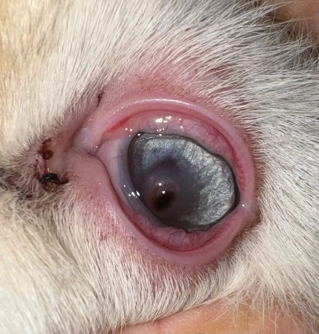 可爱的小壮圆,左眼眼球不幸遭遇角膜增生与角膜溃疡的双重困扰,且发病已长达二十多天之久。此前,在普洱的宠物医院虽有进行治疗,然而遗憾的是未见丝毫好转。主人怀着满心的焦急与疼爱,不惜不远万里,亲自护送狗狗来到我院。