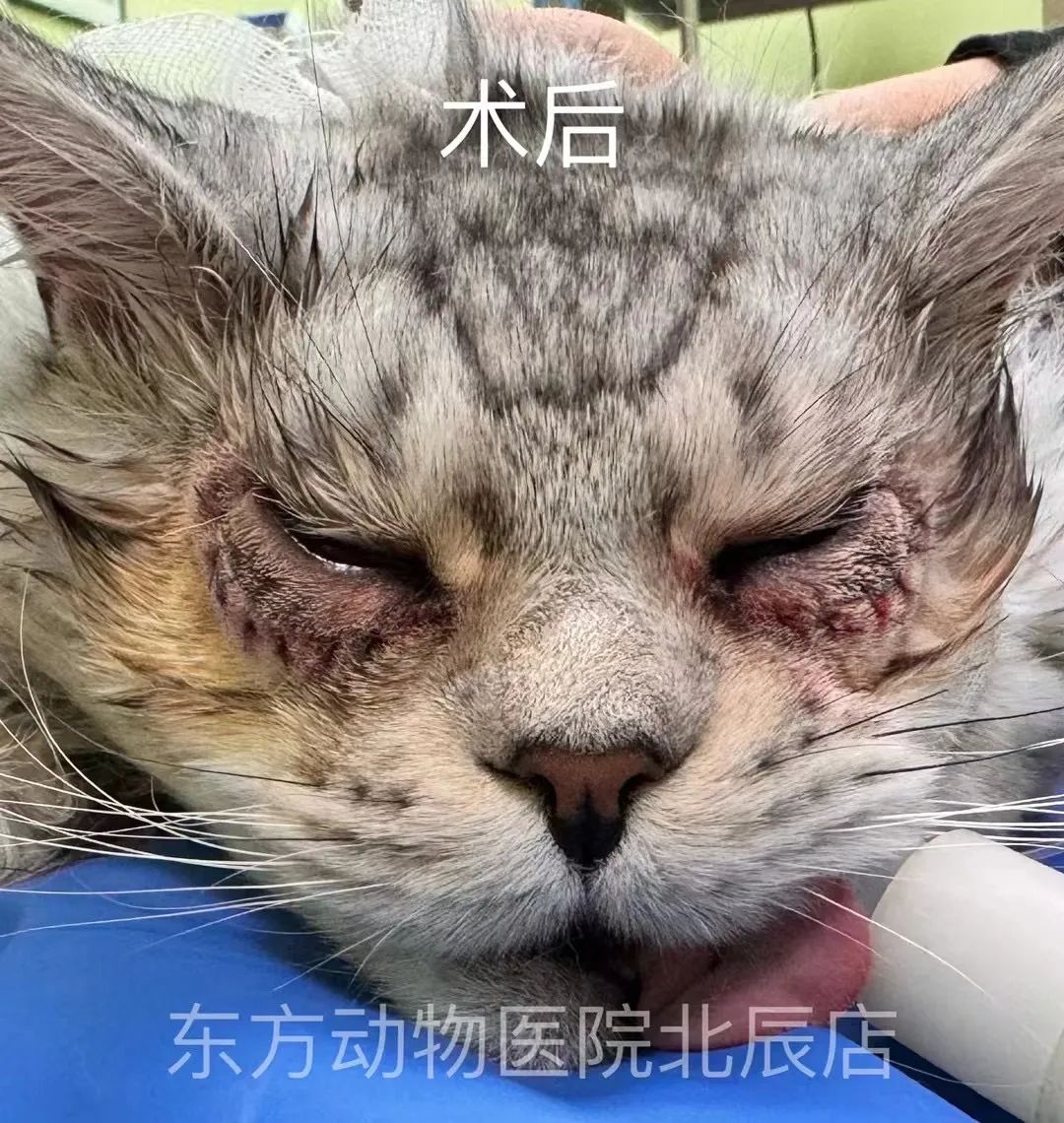 然而,幸运的是,及时的手术矫正为它带来了新的希望。在专业医生的精心操作下,这场与眼睑内翻的战斗取得了阶段性的胜利。我们有理由相信,在不久之后,这只勇敢的缅因猫必将重焕往日光彩。它那双迷人的眼睛,定会如璀璨的卡姿兰大眼睛一般,再度熠熠生辉,散发着灵动与活力,继续在它的世界里探索、嬉戏,为人们带来无尽的欢乐与温馨。