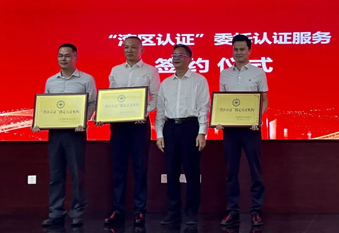 仪式现场,广东省市场监督管理局领导向总站公司颁发“湾区认证”指定认证机构牌匾。总站公司与广东粤港澳大湾区认证促进中心签订“湾区认证”委托认证服务合同,正式成为“湾区认证”指定的10家委托服务机构之一。10家认证机构共同发出《“湾区认证”传递信任、服务发展倡议》,表示坚守“传递信任、服务发展”的认证初心,严格履行认证机构主体责任,引领行业转型升级,促进发展新质生产力。