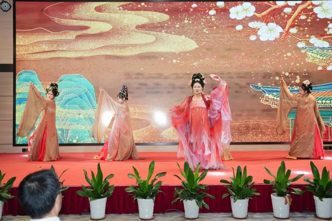 本场晚会最后一个参赛节目是由EM金晓雪、周婷婷、田警娜、金虹霞、付香带来的歌舞《长安三万里》,带我们穿越时空,一同走进大唐盛世,曼妙的舞姿真是令人目不转睛。