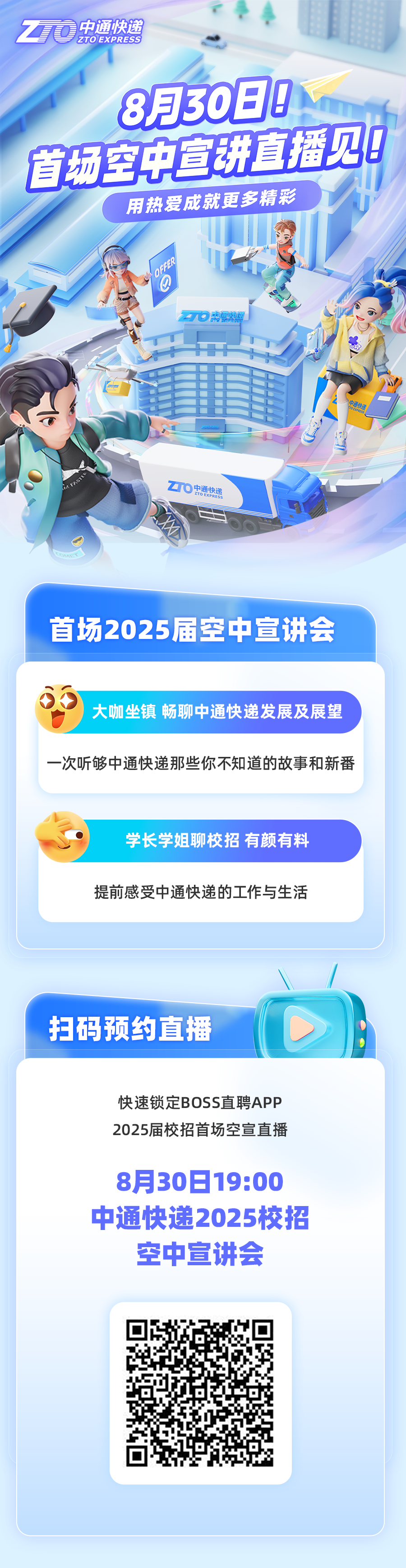 就在8月30日!中通快递首场空中宣讲直播,我们不见不散~