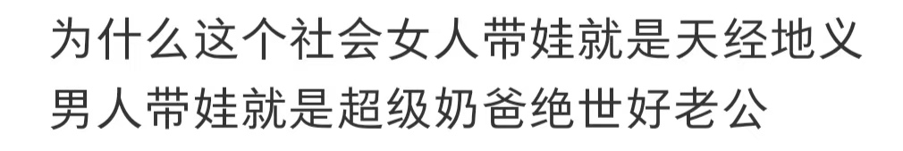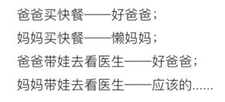 妈妈参加家长会就是日常,爸爸参加家长会就是惊喜;妈妈带娃就是天经地义,爸爸带娃就是超人、好爸爸。