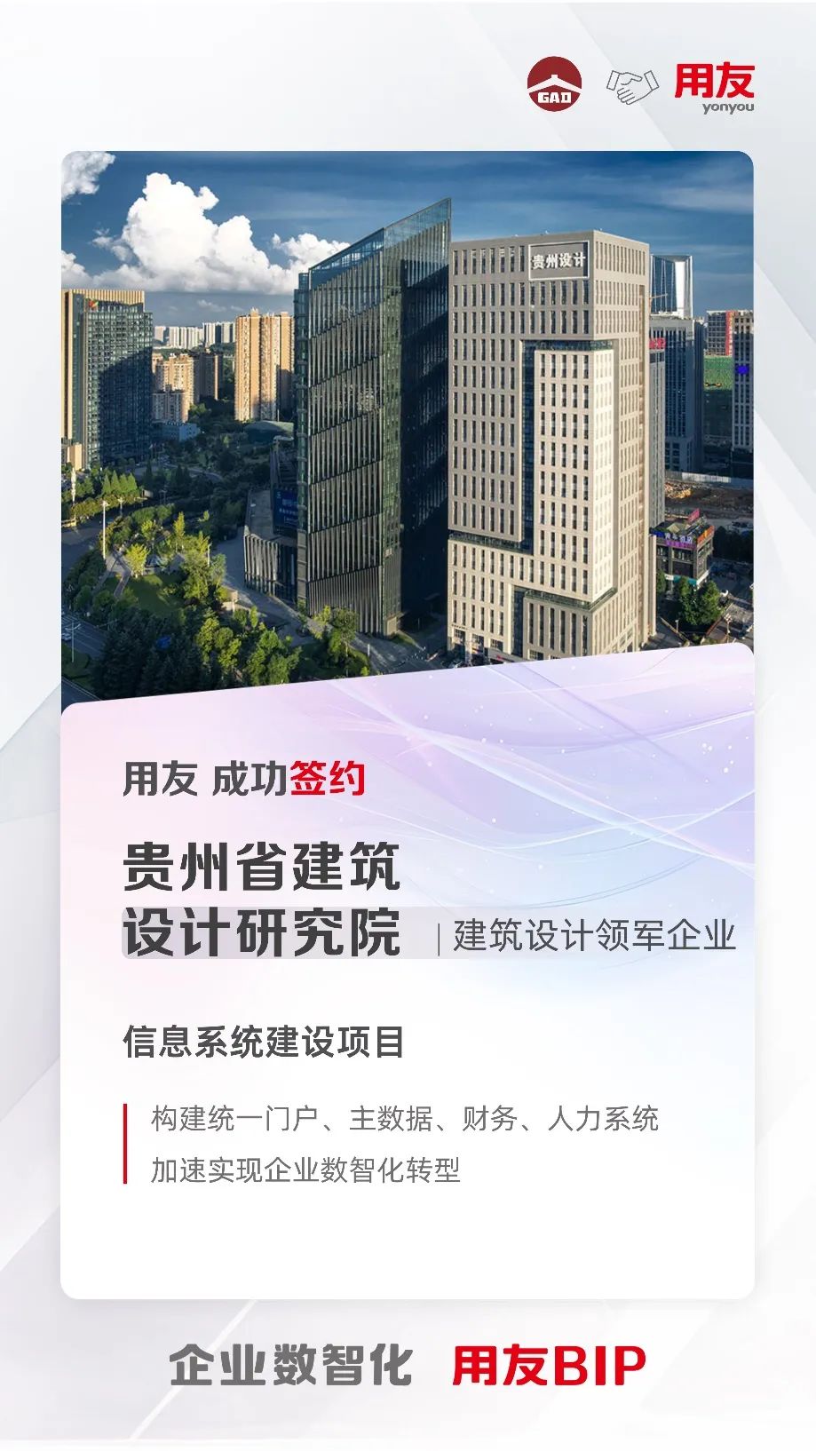 近日,用友与贵州省建筑设计研究院达成合作,共同推进信息化建设项目,旨在通过打造业财融合系统,构建数智建院,赋能战略落地,全面提升设计院的工作效率与经济效益。