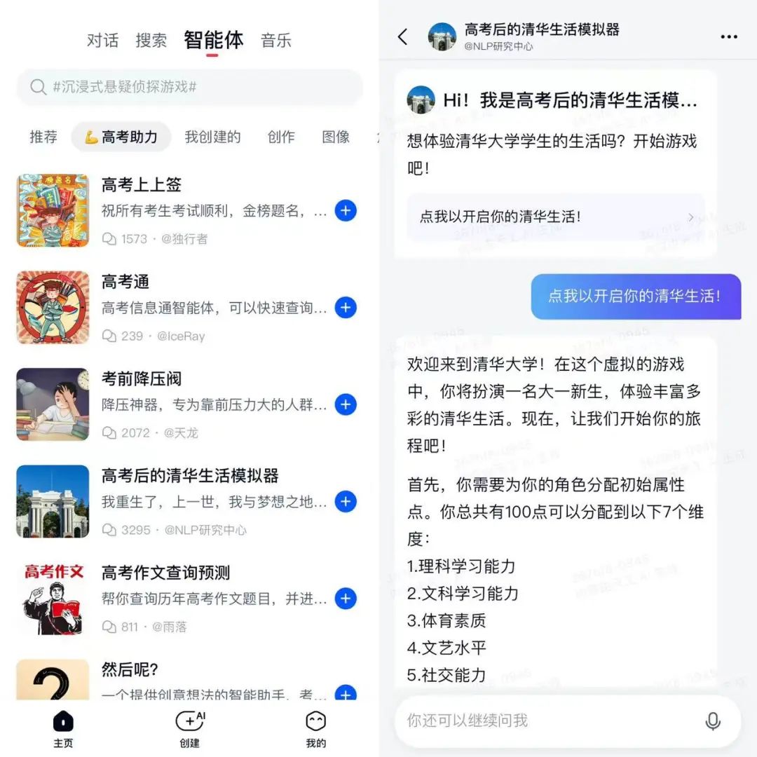 又或者考生还可以通过天工AI,提前模拟在清华大学的校园生活。