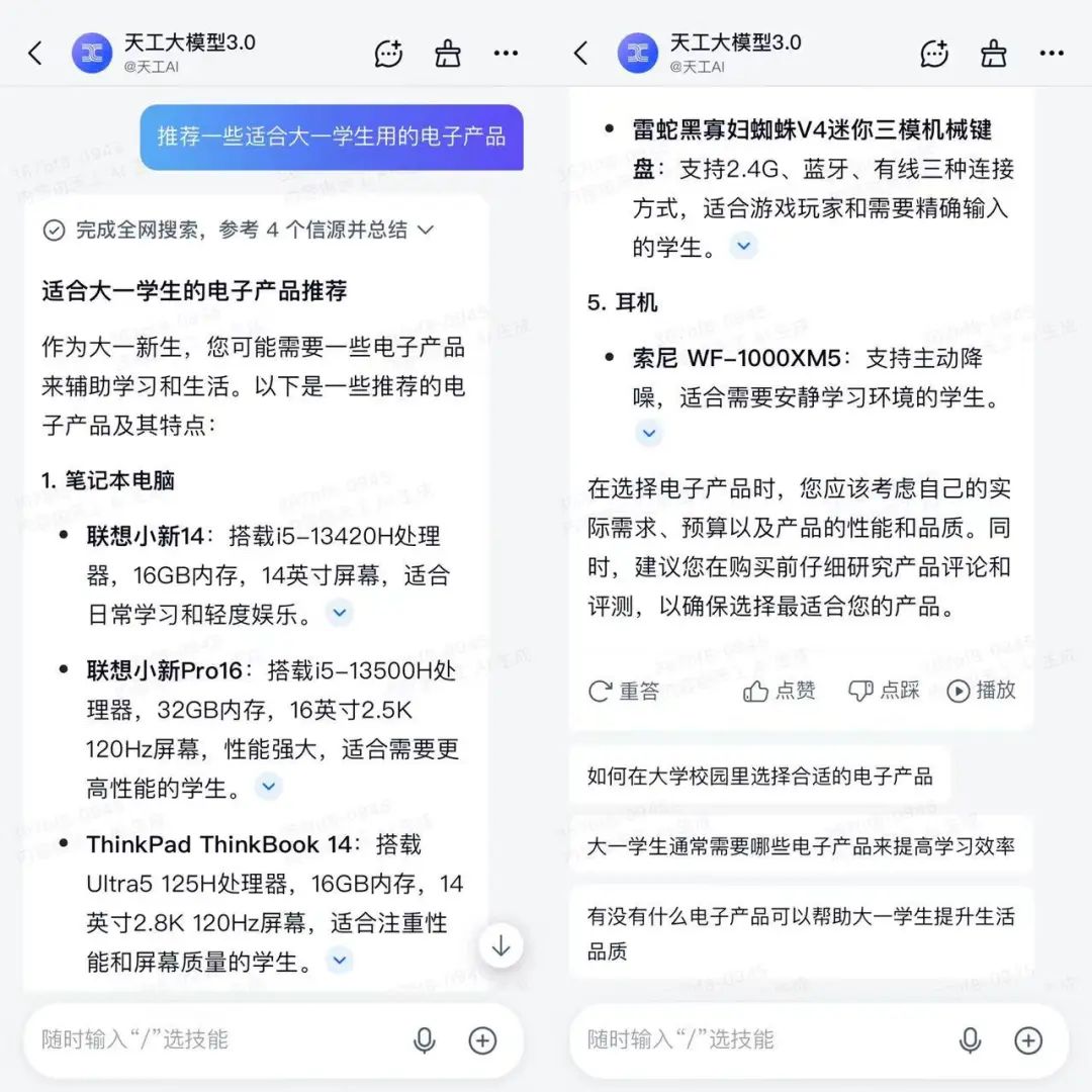 当然,作为“新手”也无需担心考虑的不全面,因为天工AI会自动延伸问题。