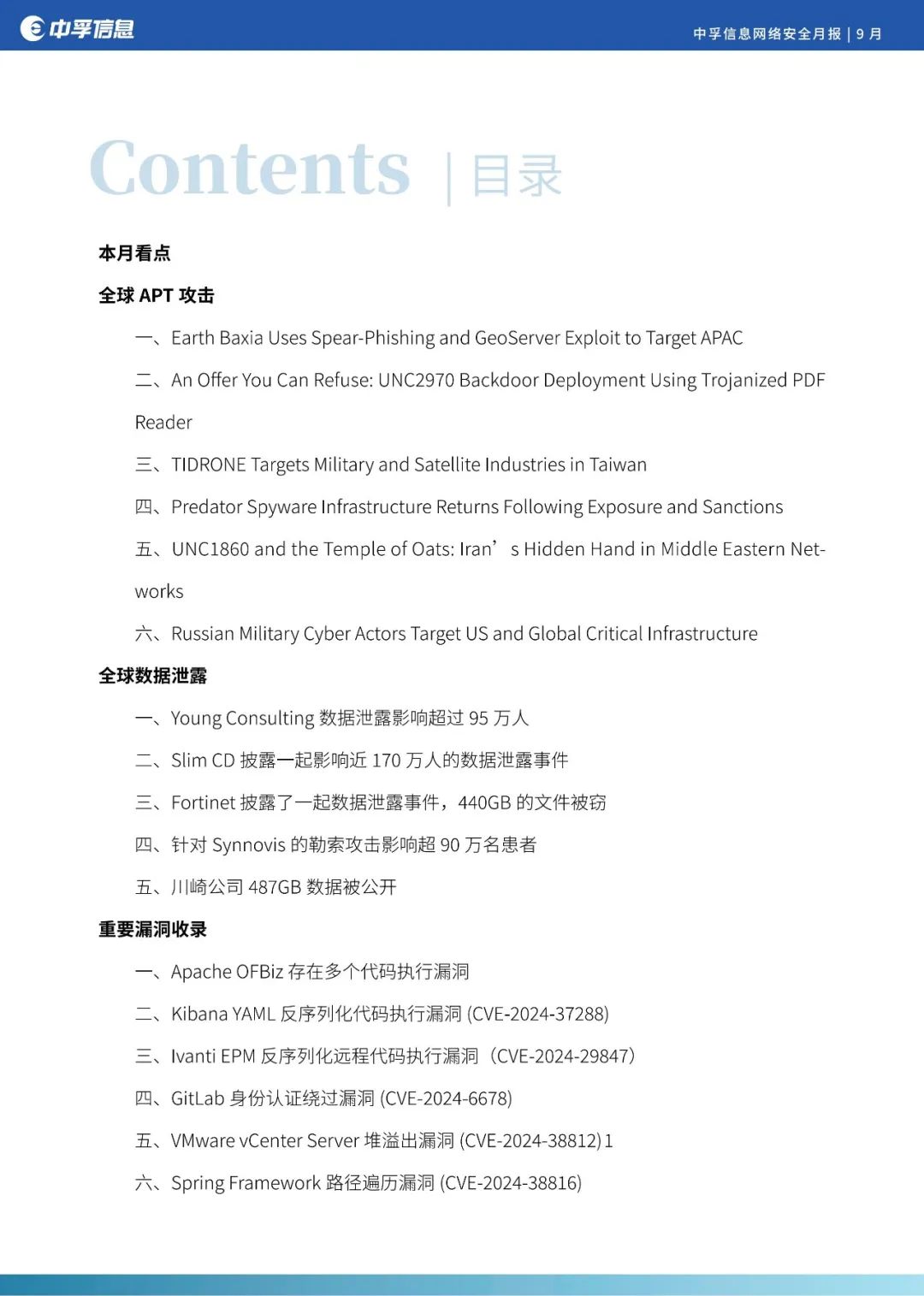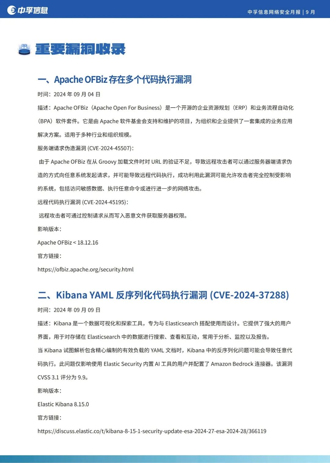 中孚信息发布《中孚信息2024年9月网络安全月报》