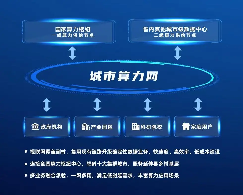 视联网确定性网络技术,作为应对数字经济时代算力需求大爆发的创新方案,直击全国一体化算力体系构建中的自主可控、结构安全、低延时等痛点。通过超低抖动时延传输、安全稳定的统一承载、高兼容低成本以及高效集约的普惠服务,视联网有力推动算力基础设施建设,助力算力网应用落地,满足跨地域、跨国界的算力需求。