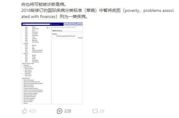 而且,如今“穷”真的是一种病,世界卫生组织曾经发布的“死亡率和发病率统计”中,出现了“贫困”的字眼,并将“贫困”“低收入”等暂列为致病的因素。