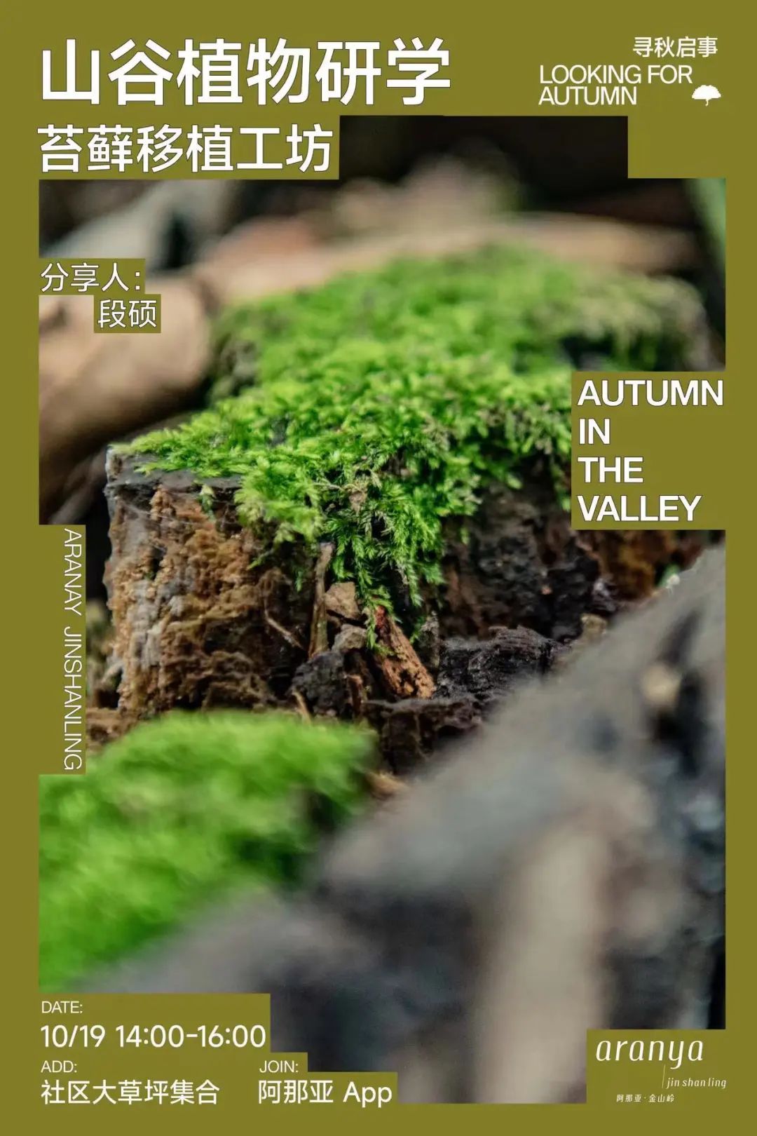 都说秋天是丰收的季节,应是自然,也是万物,在秋收冬藏的仪式感里,我们总会借由四季更迭来细究内心的涌动,用一个秋天的时间内观、平复、再出发。在红叶漫山之际,y MOUNTAIN特邀专业瑜伽与冥想老师到访,打开一场隐修山野的五感之旅。在三天两晚的课程中,以瑜伽、正念、疗愈、美食、徒步、手作的方式,和大家一同沉浸式享受绝美秋色,唤醒身心的感知。天文爱好者,千万不要错过“紫金山-阿特拉斯”彗星,将在10月中旬抵达近地点。这是一颗逆行轨道彗星,环绕太阳一周的时间约为61751年,上次到访地球附近时,人类刚刚进入石器时代。所以这一次,快来一同化身“追星者”,在金山岭捕捉这颗千载难逢的彗星!万物有灵,生命迭起,当大部分植物绚丽谢幕时,才是苔藓的生命萌生时刻,它们不会枯萎,而是在冬季到来前努力生长。在工坊,邻居段硕将带领大家体验种植新品种大灰藓,并在徒步之余探索山谷原生的苔藓品种,科普苔藓的有趣习性。