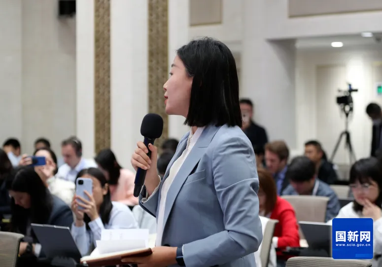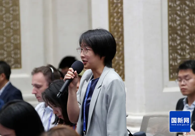美国国际市场新闻社记者提问(赵一帆 摄)