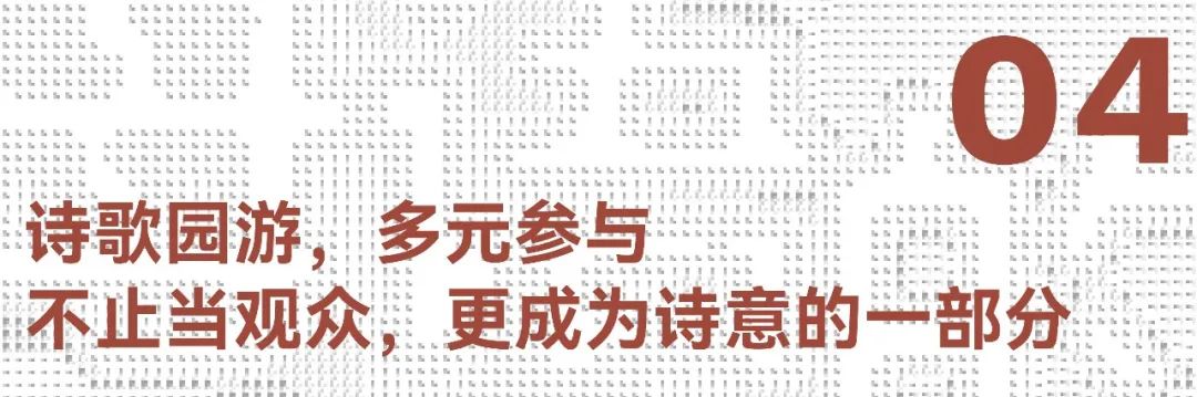 有中国诗人主理诗歌工作坊,与我们分享诗歌创作的经验和方法;还有国内外诗人齐聚,带来“故乡”的一场快闪;以及受青年潮流群体喜欢的小红书青年诗人,将诗歌化为装置艺术,书写在阿那亚的不同建筑空间。诗歌不再是遥远的艺术形式,而是变成了日常的一部分,让每一个参与者都能从中找到共鸣与乐趣。