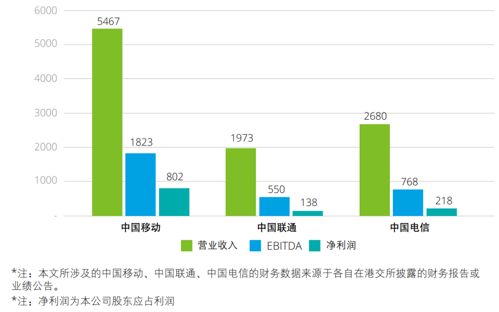 图:三大运营商2024年1-6月财务数据*比较(单位:人民币亿元)