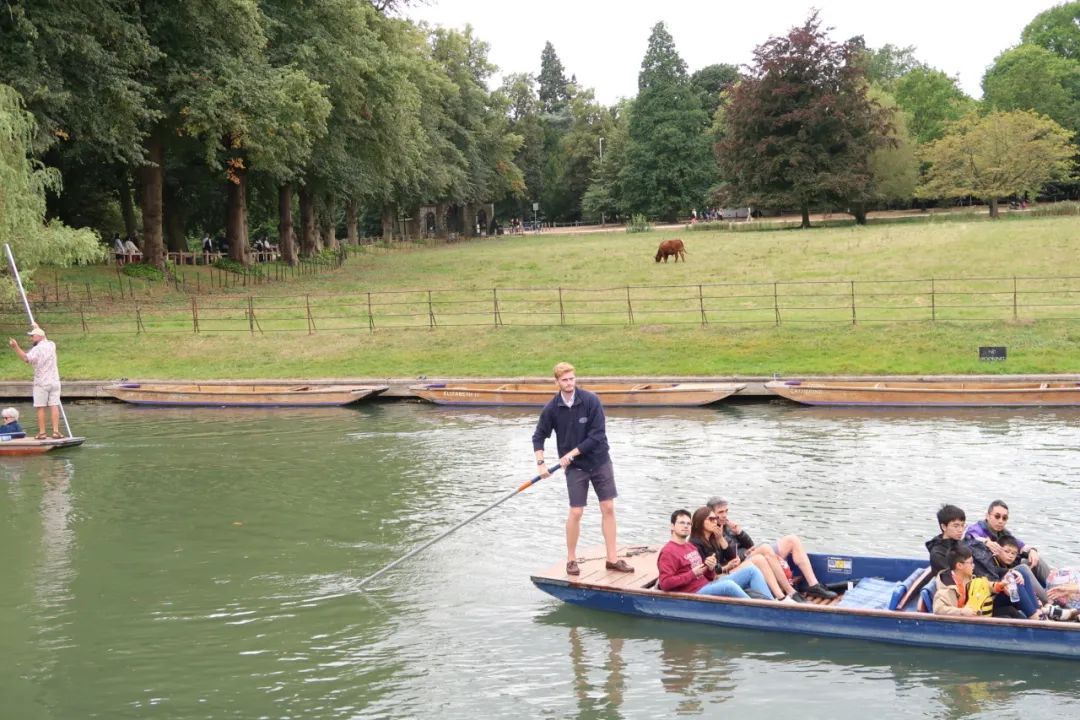 在参观的路上,我们遇到了很多来自世界各地的游客和学生,大家都在欣赏这里的建筑和文化。在剑桥大学的校园里,我们可以看到许多学生在草坪上休息、读书或者讨论问题。这种悠闲自得的氛围让人感到非常舒适。在这里,人们可以享受到丰富的学术资源、优秀的师资力量和独特的文化氛围。除了参观学院,下午,我们还去康河上划船。康河是剑桥大学的标志性景点之一,河水清澈见底,河岸两侧绿树成荫,让人感到非常舒适。在船上,我们欣赏到了剑桥大学的美丽景色,也深刻体会到了徐志摩笔下的那首《再别康桥》的意境。