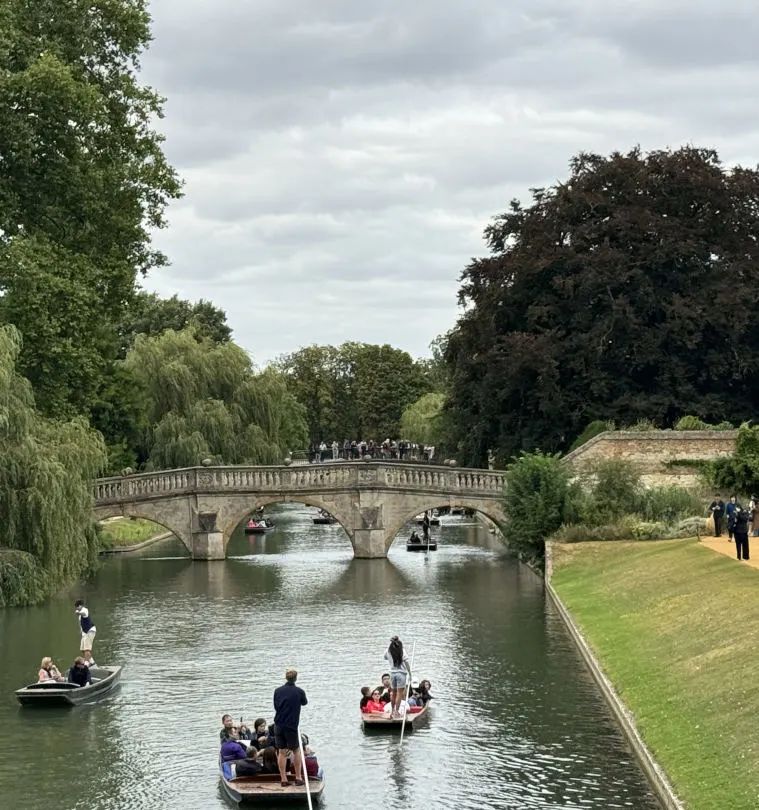 初到剑桥,映入眼帘的是那古老而庄严的学院建筑群,每一砖一瓦都仿佛在低语着过往的辉煌与学术的沉淀。穿过蜿蜒的康河,两旁是郁郁葱葱的树木和错落有致的学院船屋,陈同学深刻感受到了一种超越时间的宁静与美好。