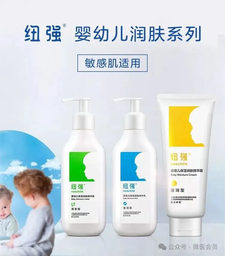 考虑到婴幼儿、儿童经常出现湿疹、特应性皮炎等皮肤问题,纽强并不采用药物介入,而是使用天然成分、保湿技术来干预这些问题,帮助婴幼儿抵抗外界有害物质的侵袭,同时建立健康的皮肤屏障。
