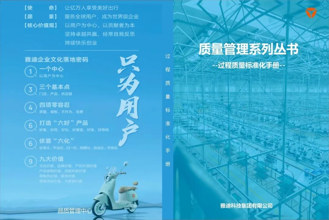 高质量产品是雅迪不断向上发展的坚实底气,二十多年来,雅迪一直秉承着“在制造工序中寻求质量,并将质量引入到工序”的制造理念,专门制定了《质量管理系列丛书》,让每一台车辆从研发到生产等各个生产环节严格按照质量标准进行,通过在生产的各个环节减少缺陷的产生,从而提升最终产品的整体质量,切实保证每一位用户都能购买到高质量、高品质的出行精品。