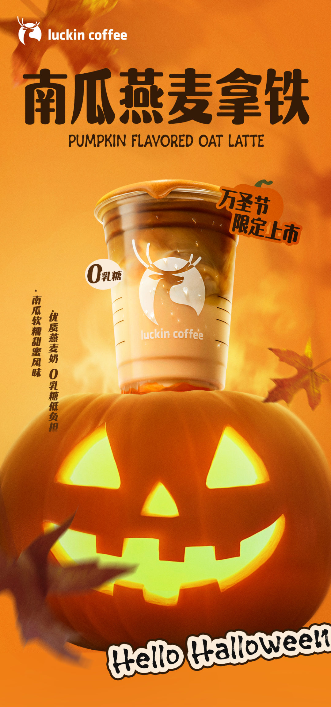 【瑞幸】万圣节特饮!南瓜燕麦拿铁上新!小馋鬼集结~