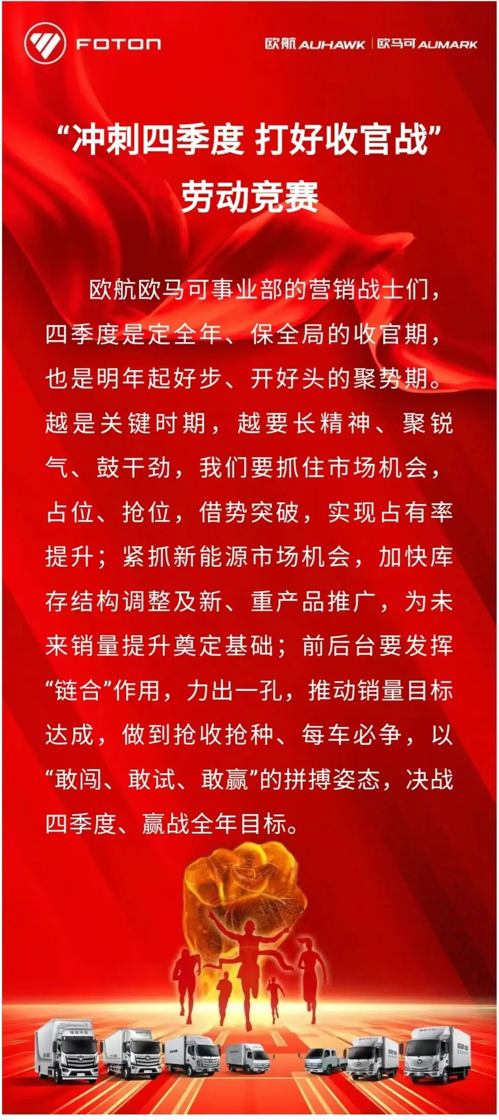 【创赢收官 亮剑冲锋】欧航欧马可事业部“冲刺四季度 打响收官战”营销劳动竞赛,用数据书写奋斗荣光!