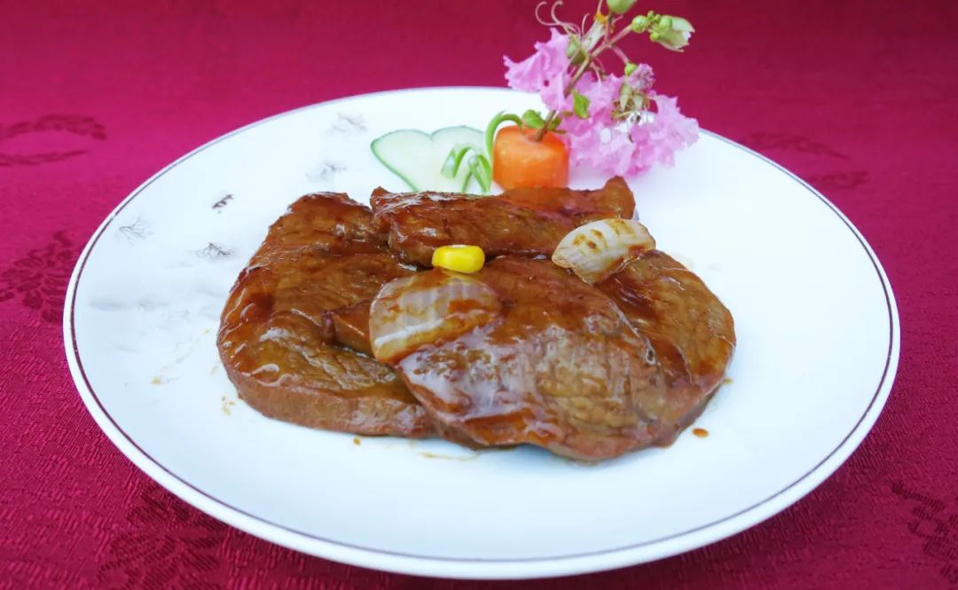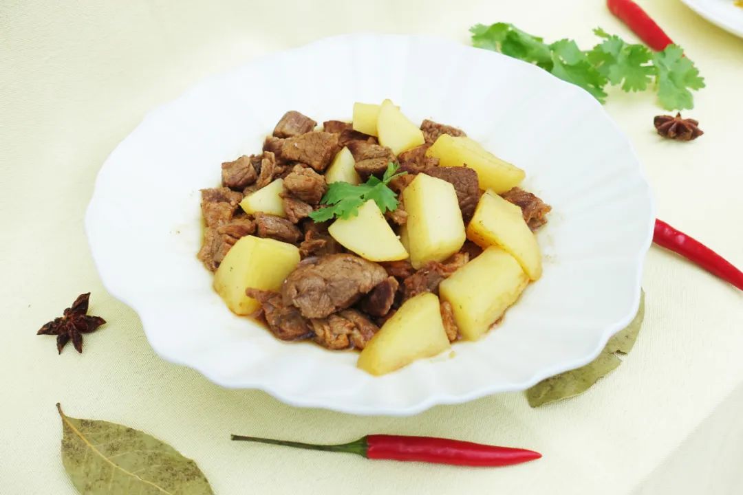 青椒牛肉(青椒10g、土豆10g、牛腿肉60g、彩椒各5g)