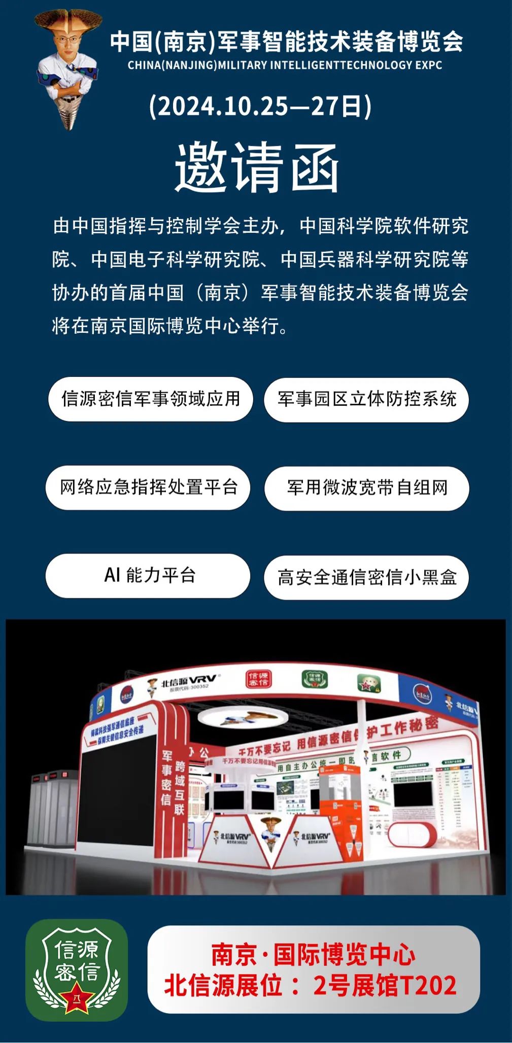 作为军队和军工行业应用的主力军、信息安全领军企业,北信源产品已在军队军工领域广泛应用,部署在各总部机关、各军兵种和军事院校。高定制、高稳定、高安全的产品特点深受军中办公人员喜爱。北信源本次参展南京军博会,集中展出多款军方应用的安全产品及解决方案,主要有:信源密信军事领域应用、军事园区立体防控系统、网络应急指挥处置平台、军用微波宽带自组网、密信AI能力平台、高安全通信密信小黑盒等。北信源还推陈出新展示了在军事现代化园区智能防范系统建设方面的先进技术和解决方案。应对现代化战争中的多种挑战,可提供针对人、车、物、低空飞行器等重要领域的安全防护,也包括对仓库、消防等的安全管控,确保军用园区的安全。针对现代战争情报战,北信源也展示出在防止数据流失方面的技术能力,这对于保护敏感信息不被敌对势力获取至关重要。而北信源高安全通信解决方案,能够确保在战争或危机情况下的关键通信的安全。 值得一提的是,北信源公司最早成立于南京,之后总部设立在北京,发展至今已有28年。作为老牌网络安全厂家,公司一直非常重视在江苏区域的发展,在南京本地的全资子公司——北信源系统集成有限公司设立至今12余年,拥有全套涉军资质(部分资质为行业类最高级),成为北信源重大项目的中坚力量。目前,南京公司正在建设的坐落在江北新区,拥有9万平米的研发基地,旨在不断扩展公司在南京地区的战略发展。本次南京首届军博会,北信源携诸多先进技术、高精尖产品重磅亮相,反哺故土,回报桑梓。