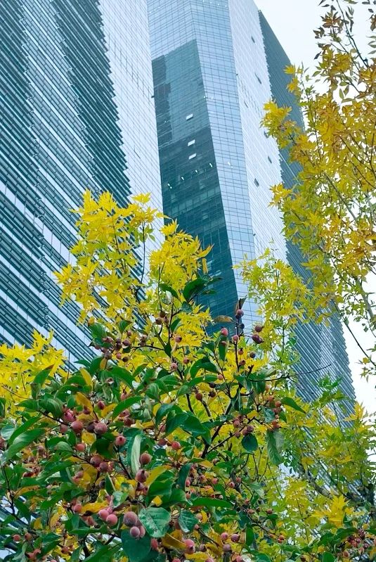 满树金黄化为诗意洒落在中海园区。凉亭的靠椅上,三俩好友,谈笑风生,享受秋日美好。