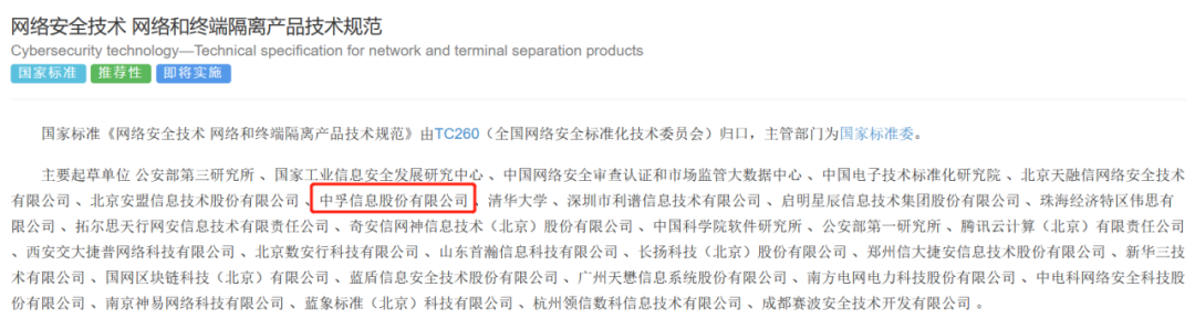 中孚深度参与起草的《网络和终端隔离产品技术规范》新国标正式发布