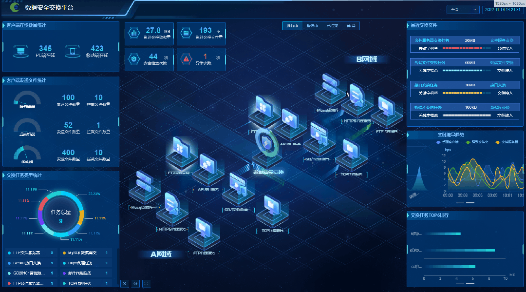 中孚新一代数据安全交换平台结合公司自研的网闸和网络单向导入产品等隔离产品(基于GB/T 20279-2024)形成完整跨网数据交换解决方案,提供丰富的数据共享和交换模式,满足全场景数据共享交换,解决在不同类别数据的交换过程中数据泄露、被攻击的风险,为不同网络间、不同平台间提供安全高效和可管可控的跨网、跨域及跨云平台的数据安全交换和共享能力。在党政、企事业单位的电子政务、资源发布、跨网办公、工控融合、共享交换场景广泛应用,目前已完成多行业多领域多场景1000+客户案例。