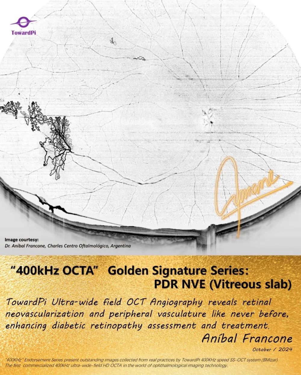 “图湃超广角OCTA以前所未有的方式揭示视网膜的新生血管和周边部血管结构,强化了我们对于糖尿病视网膜病变的评估和治疗能力!”