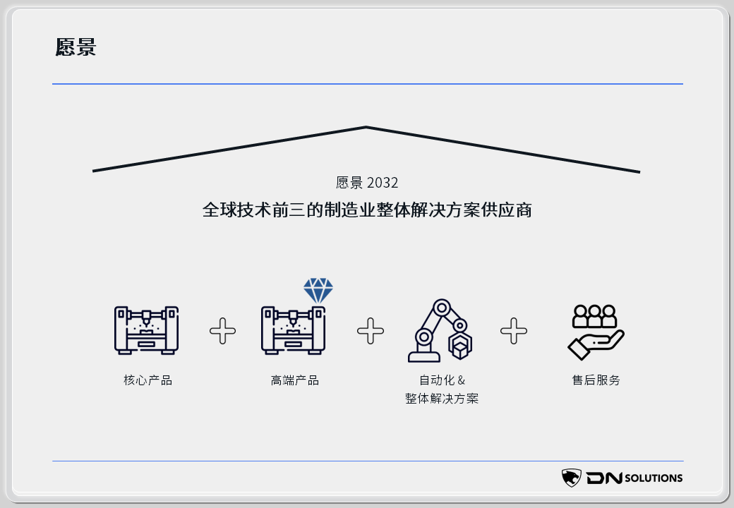 从2022年1月28日开始,斗山机床成为了拥有50年历史的全球前三的汽车防震配件制造企业——DN Automotive的新成员,并更名为迪恩机床,从此与DN Automotive共同站在新的起点上。今后迪恩机床也将巩固与供销商及其合作公司的信任,并进一步加强产品和服务的竞争力。敬请期待和支持迪恩机床描绘的全球市场的未来。