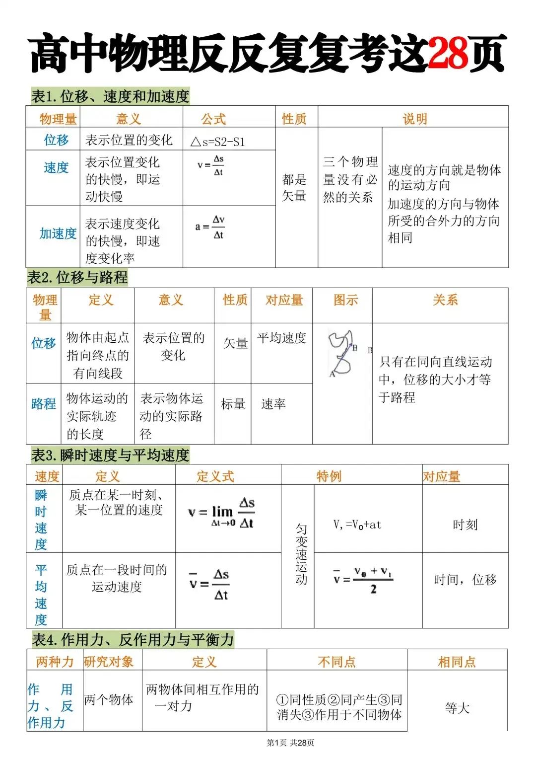 为了帮助大家更好的学习高中物理,下面,老师特意为大家分享一份由清华尖子生整理的高中物理资料,共28页,包含了高中3年的全部重难点,打印吃透了三年不丢分!